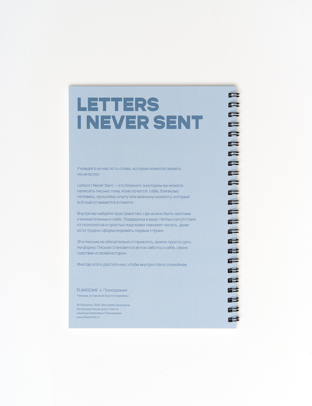 Что внутри: Пространство для писем, где можно писать себе, другим людям или прошлому опыту. Блокнот включает советы по работе с письмами и тёплые напутствия от психологов Психодемии, которые помогут начать и поддержат процесс.