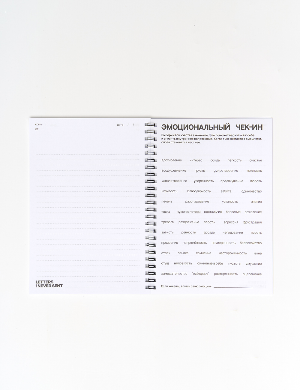 Letters I Never Sent — блокнот для терапевтических писем себе, другим или прошлому опыту, чтобы прожить чувства и лучше понять себя.